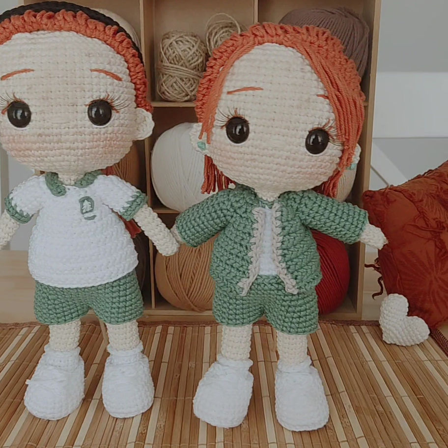 Con este patrón podrás tejer tus propias “Gemelas pelirojas” con un toque personal y único. El patrón está diseñado para ser trabajado con un gancho de 3 mm e hilaza de grosor sport. Al finalizar, tu amigurumi medirá aproximadamente 24 cm de altura.