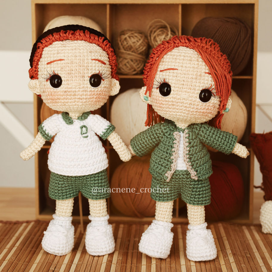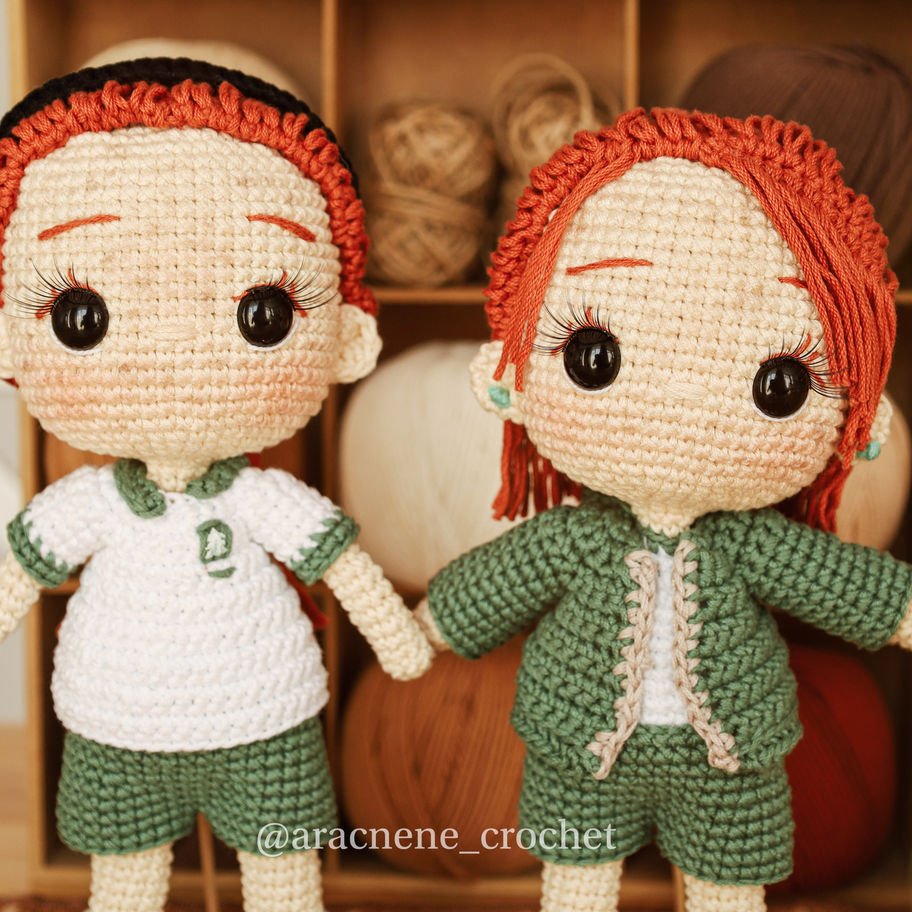 Con este patrón podrás tejer tus propias “Gemelas pelirojas” con un toque personal y único. El patrón está diseñado para ser trabajado con un gancho de 3 mm e hilaza de grosor sport. Al finalizar, tu amigurumi medirá aproximadamente 24 cm de altura.
