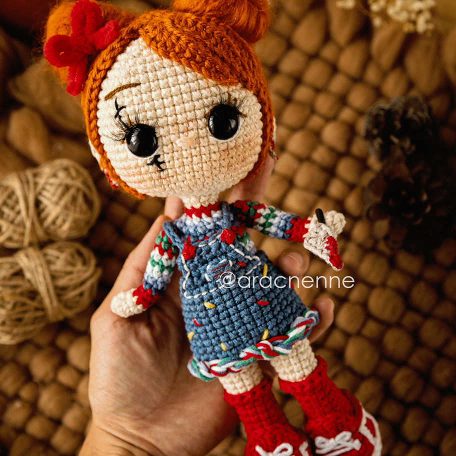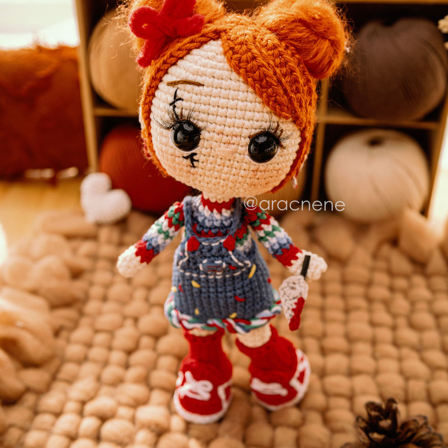 Con este patrón podrás tejer tu propia “Charlie” con un toque personal y único. El patrón está diseñado para ser trabajado con un gancho de 3 mm e hilaza de grosor sport. Al finalizar, tu amigurumi medirá aproximadamente 23 cm de altura.